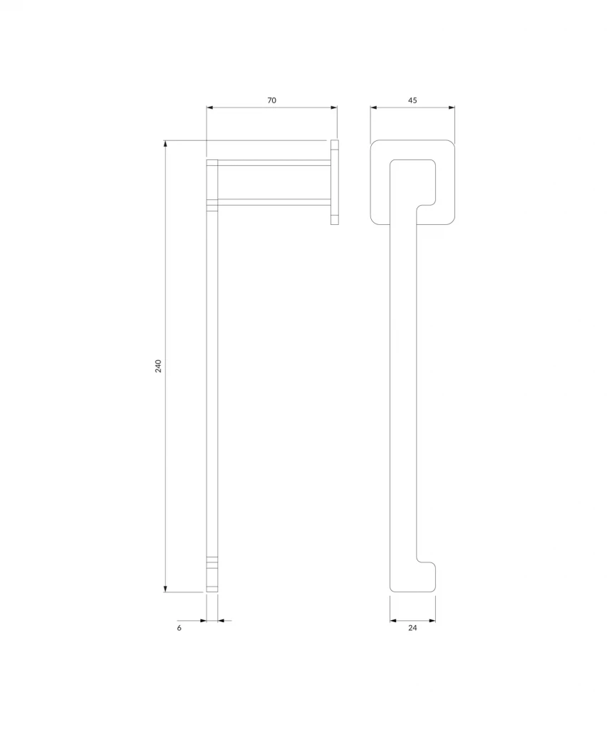 - šírka: 24 cm, výška: 5 cm, vzdialenosť od steny: 7 cm