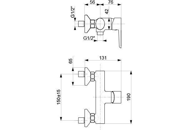 Nástenná sprchová batéria NARVA od výrobcu KFA ARMATUR A s rozstupom 150 mm bez príslušenstva.