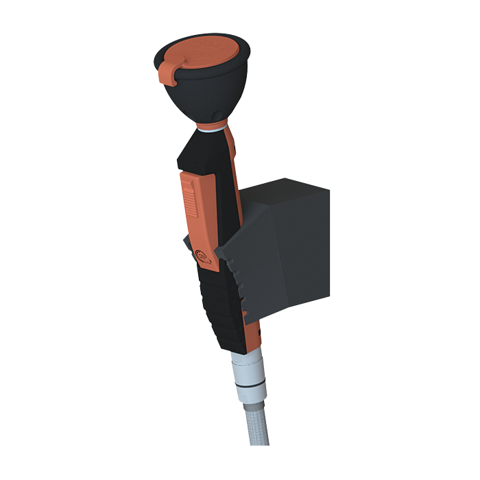 ruční sprcha s jednou hlavicí v úhlu 20 stupňů, provedení s plastovým držákem na stěnu