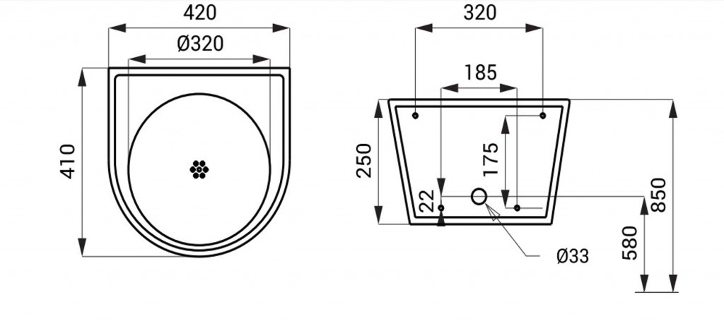 nerezové umývadlo kónické, pr. 320 mm, závitové tyče