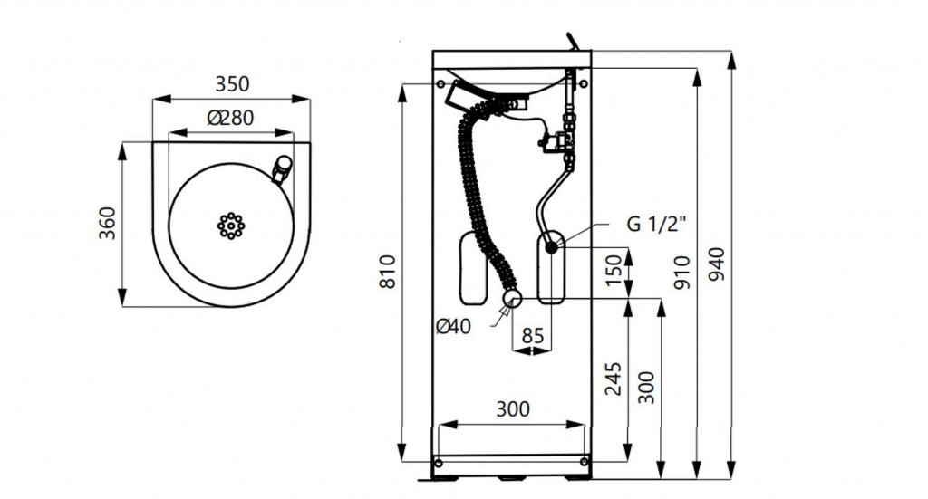 - inštalácie: k stene