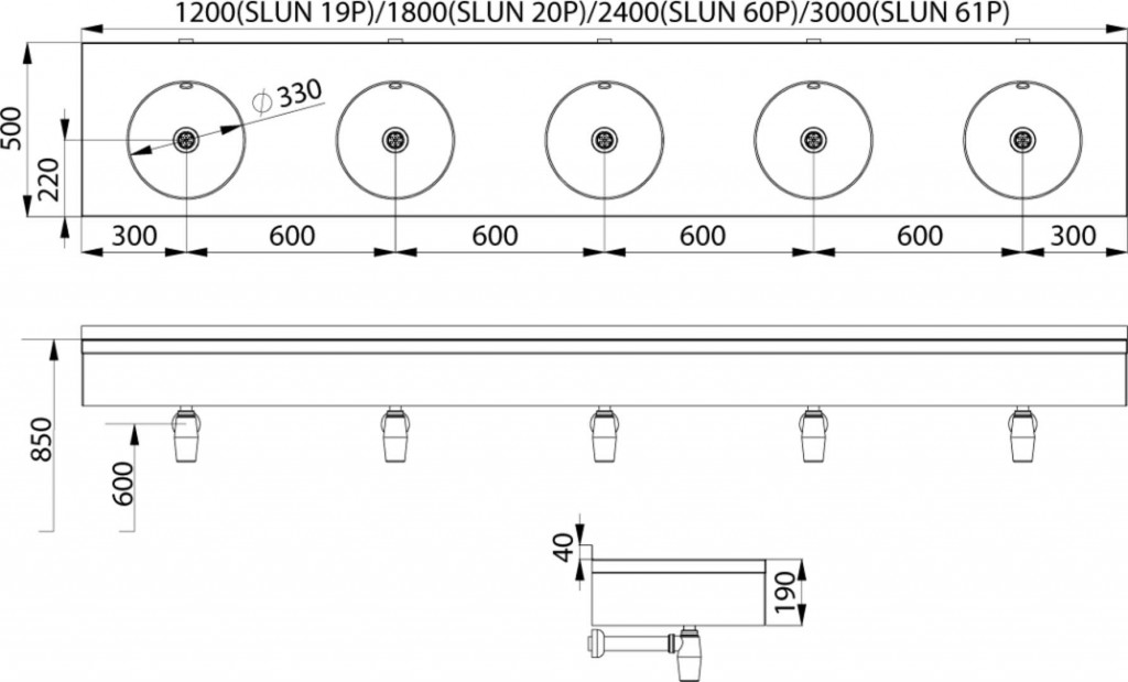 nerezové viacmiestne umývadlo, prepadové sady, sifóny, úchytková sada