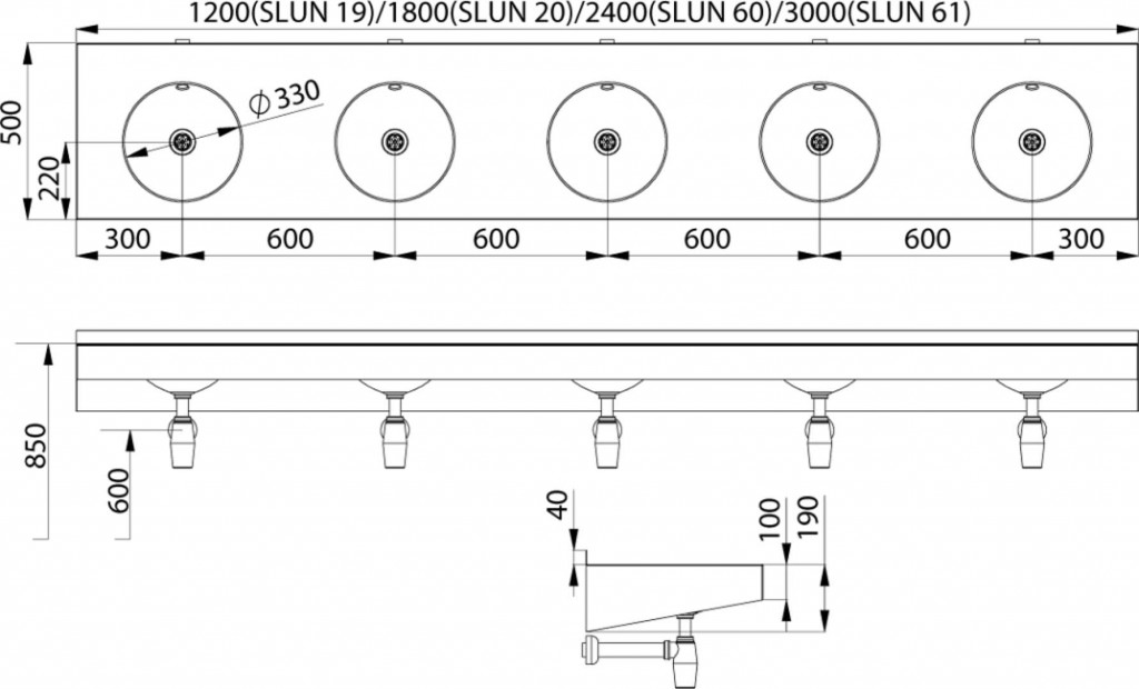 nerezové závesné čtyřumyvadlo bez opláštenia