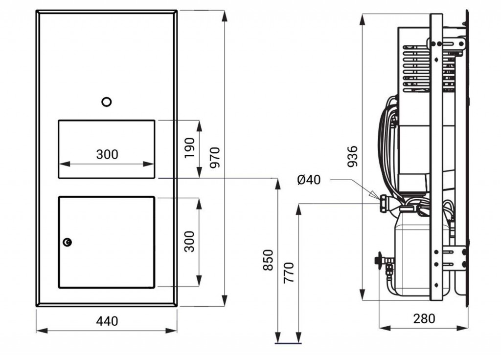 - zabudovaný piezo systém pre ovládanie dávkovače mydla, výtoku vody a sušiče rúk
