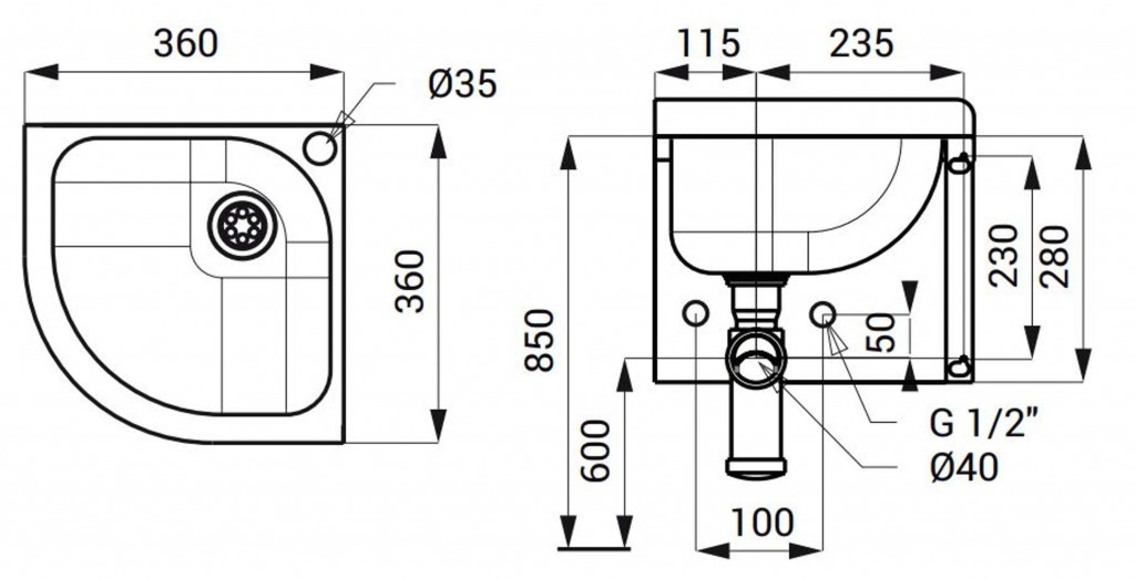 Nerezové rohové umývadlo je dodávané samostatne