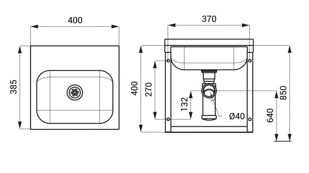 nerezové umývadlo, sifón, úchytový materiál (možnosť zhotovenia otvoru na objednávku)