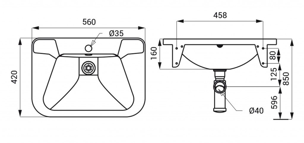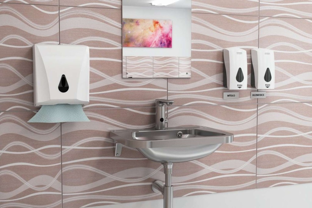 Nerezové závesné umývadlo s prepadom a otvorom pre batériu s prelismi na mydlo