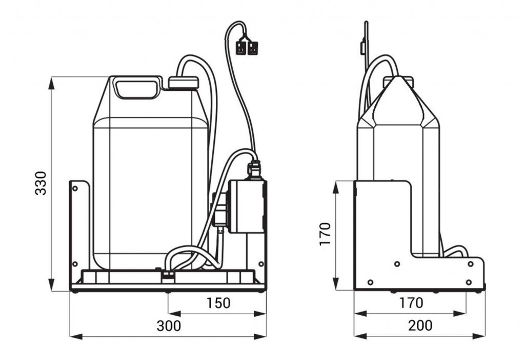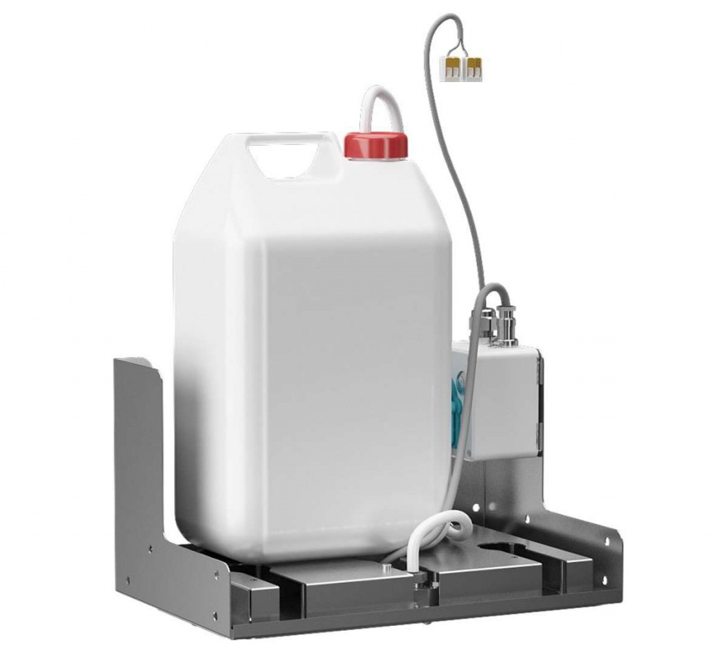 - nerezový montážny držiak s dávkovačom dezinfekcia a elektronikou