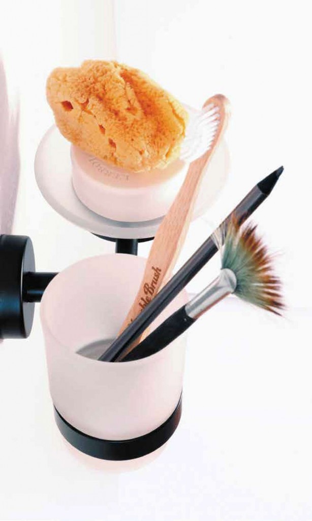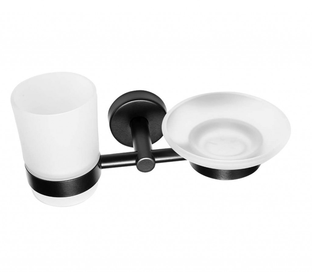 Pohárik na ústnu hygienu s mydlovničkou a dvojitým držiakom