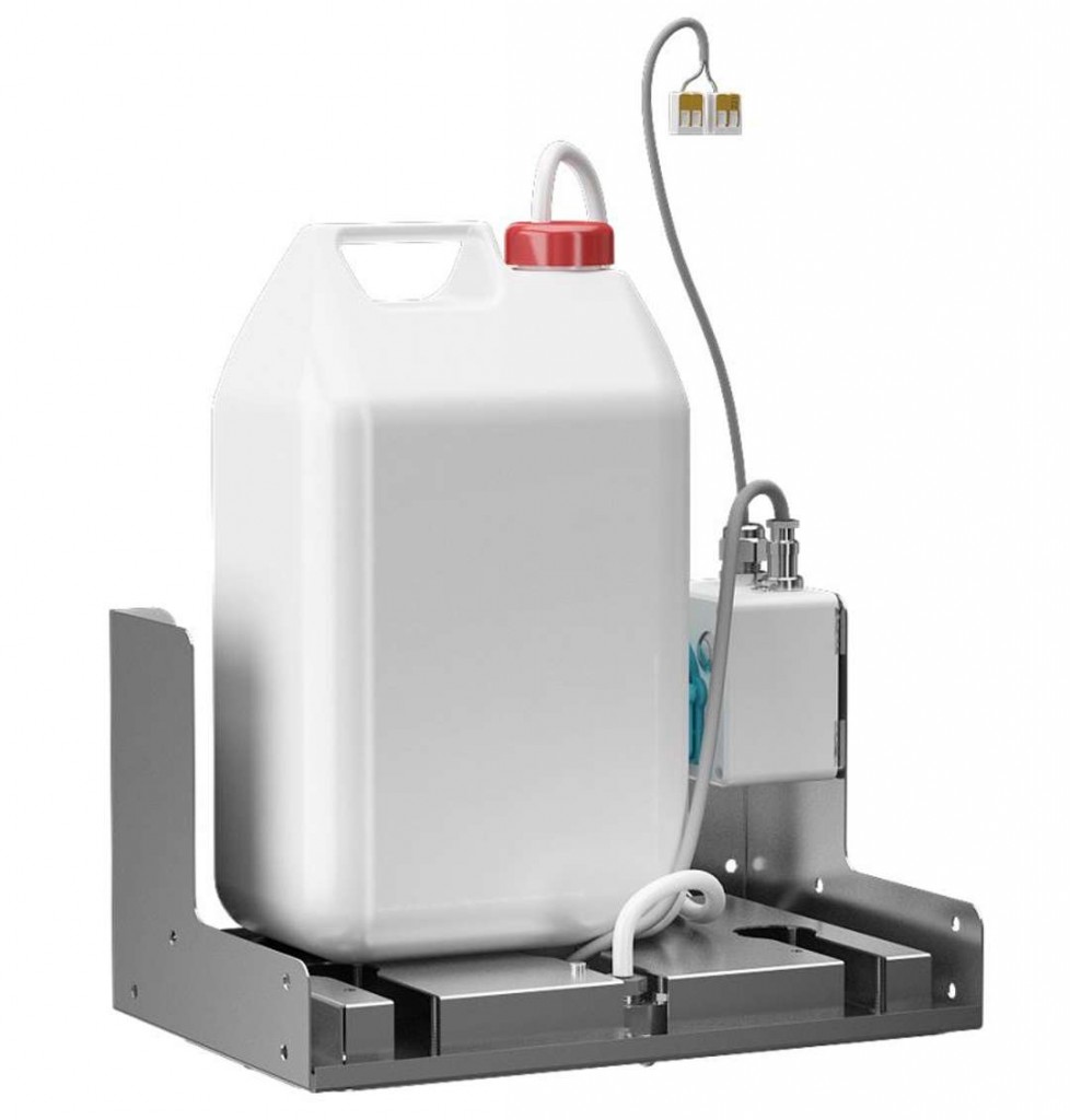 - obsahom dodávky je nerezový montážny držiak s dávkovačom mydla a elektronikou, prívodné hadičky a čerpadlo na mydlo