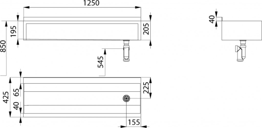 otvor pre sifón štandardne na pravej strane (možnosť zmeny na objednávku)