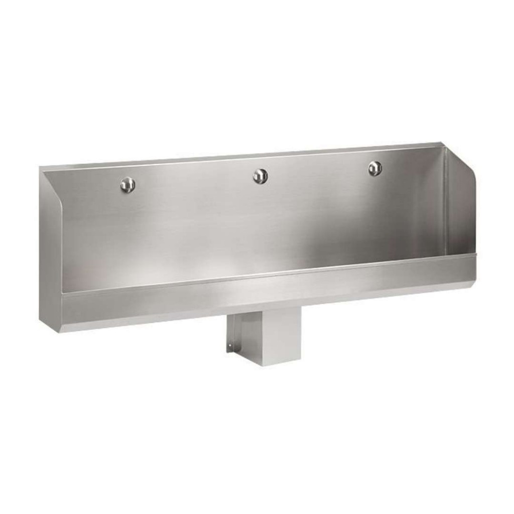 nerezový pisoárový žľab 1800 mm - 3 nerezové výtokové hlavice, čidlo s elektronikou, elektromagnetický ventil (1 ks), rohový ventil, úchytková sada, kryt na sifón, sifón