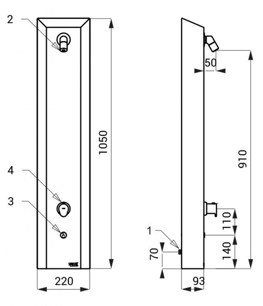 Nerezový antivandalový sprchový nástenný panel so zabudovaným piezo systémom pre ovládanie vody. Hygienický preplach. Systém reaguje na mierne stlačenie piezo tlačidla okamžitým spustením vody na dobu 10 s - 5 min (táto doba je nastaviteľná pomocou diaľkového ovládania SLD 04), alebo možno vodu zastaviť opätovným stlačením piezo tlačidla. Kontrola stavu batérie. Regulácia teploty sa vykonáva termostatickým ventilom.