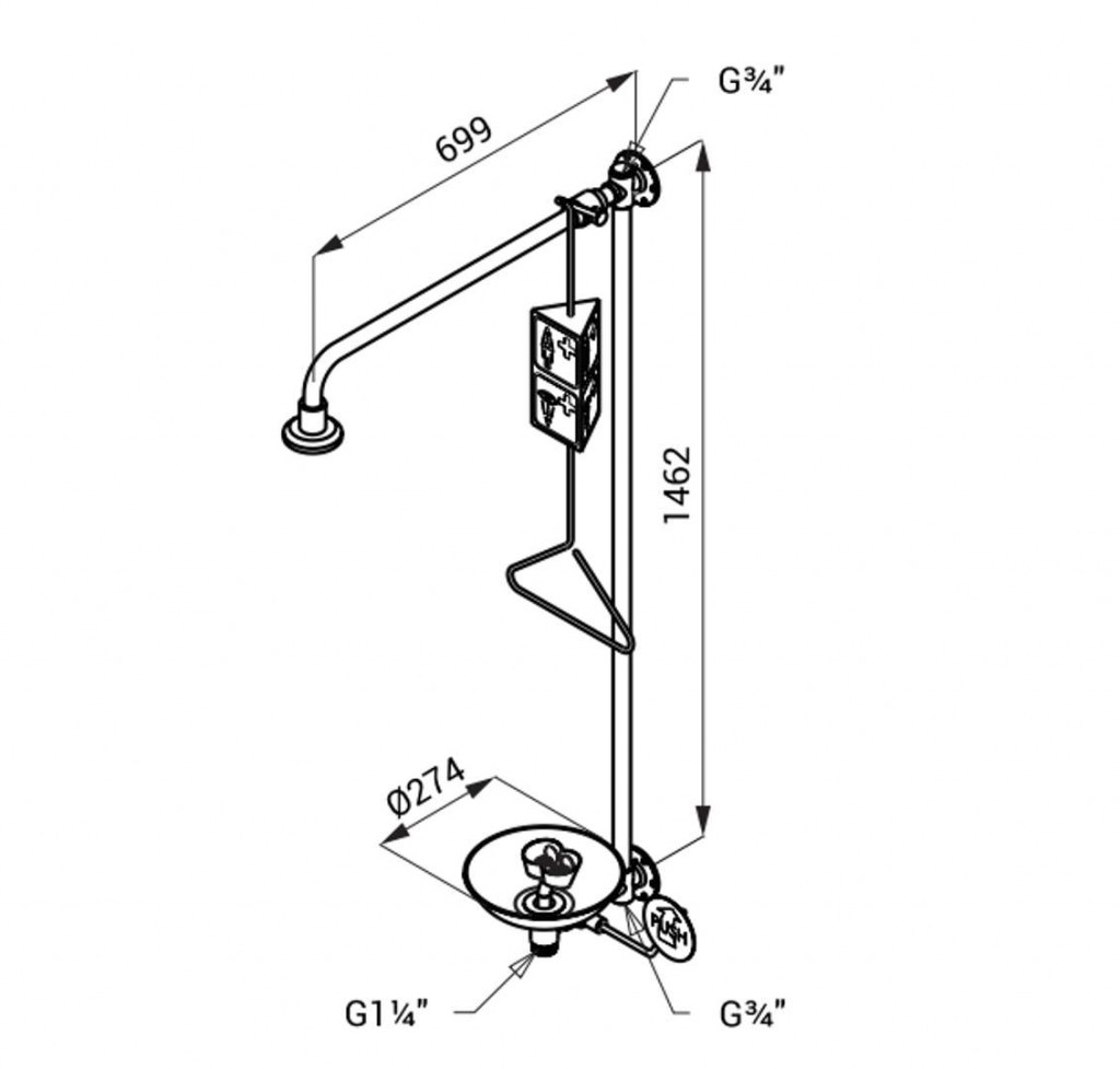Prietok: očná sprcha - 26 l / min pri 1 baru (integrovaný regulátor prietoku), telesné sprcha - 60 l / min pri 1 baru