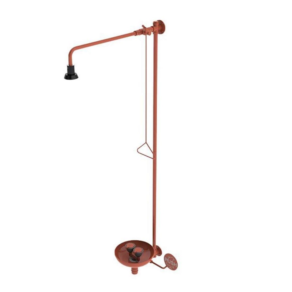 nástenná telesné a očná sprcha so špeciálnym chemicky odolným červeným lakom s dvoma hlavicami a vaničkou, úchytový materiál
