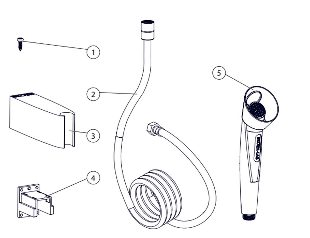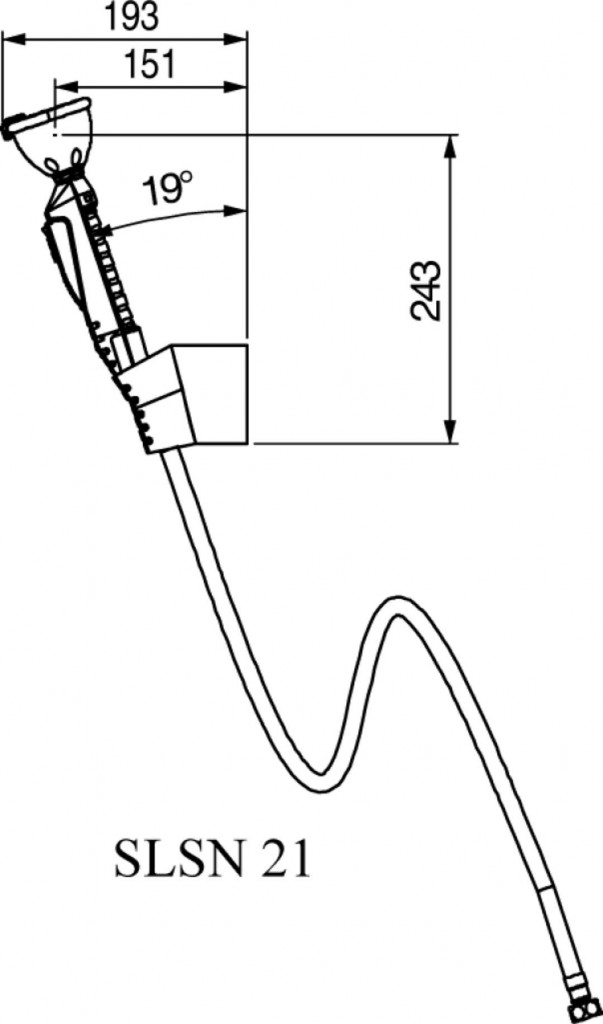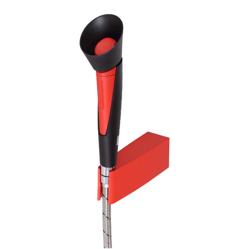 ručná sprcha s jednou hlavicou v uhle 20 stupňov, prevedenie s plastovým držiakom na stenu