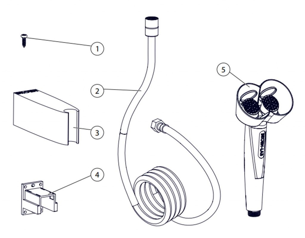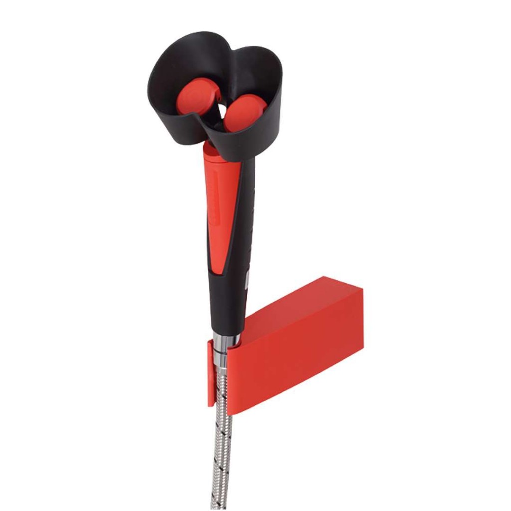 ručná sprcha s dvoma hlavicami, plast, prúd zvislo nahor, prevedenie s držiakom na stenu skrine, prívod vody vo vnútri skrine