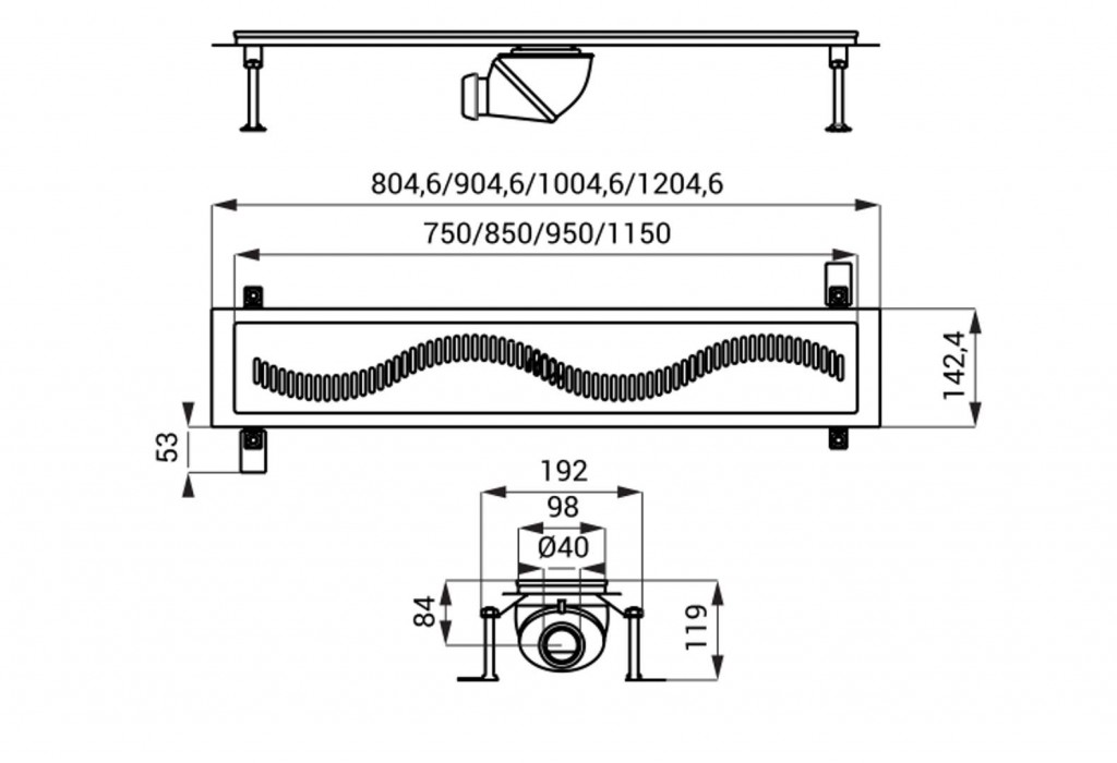 odpad uprostred, možnosť nastavenia smeru a sklonu odtoku (umiestnenie odpadu mimo stred je možné dodať na zákazku)