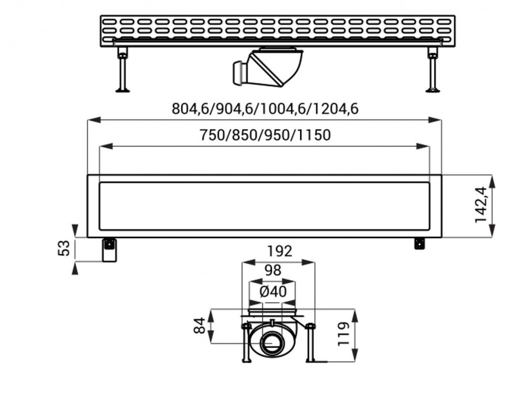 odpad uprostred, možnosť nastavenia smeru a sklonu odtoku (umiestnenie odpadu mimo stred je možné dodať na zákazku)
