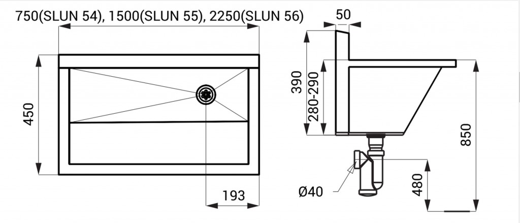 SLUN 54 - 750 mm, SLUN 55 - 150 mm, SLUN 56 - 2250 mm
