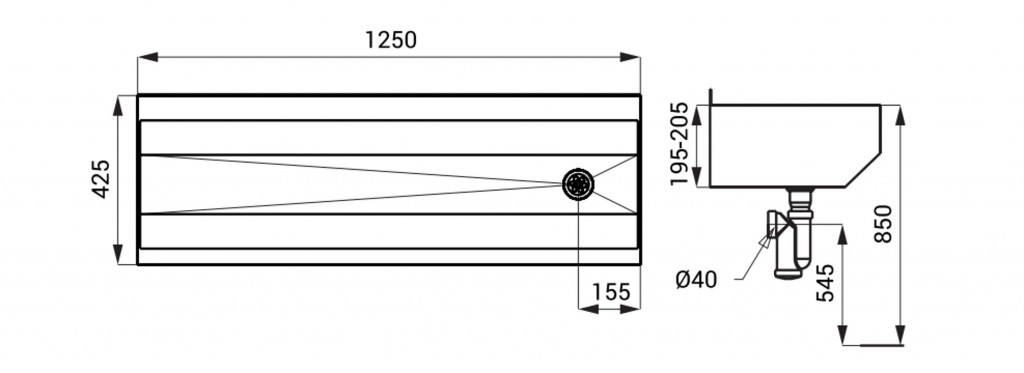 Nerezový žľab s opláštením je určený na zavesenie na stenu. Je možné dodať v požadovanej dĺžke