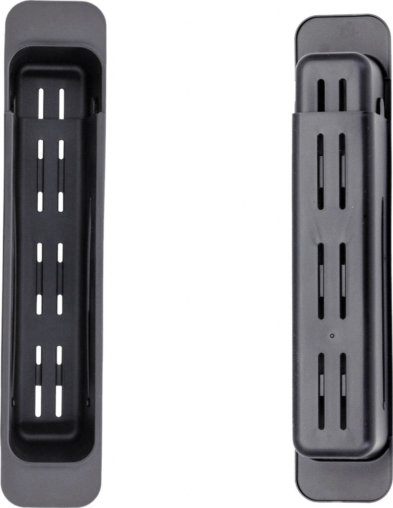 Tento čierny výsuvný kôš na drez je veľmi užitočným kuchynským doplnkom. Jeho obdĺžnikový tvar s perforovaným dnom umožňuje odtok vody, takže je ideálny na umývanie zeleniny a ovocia. Výsuvná konštrukcia koša umožňuje jeho umiestnenie do drezu akejkoľvek veľkosti. Po stranách má tiež úchyty pre ľahké vybratie a prepravu. Minimalistický a moderný design sa hodí do väčšiny drezov.