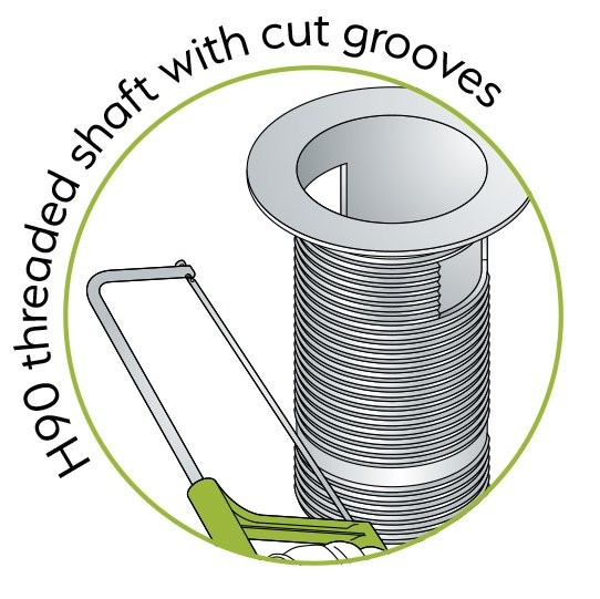- Výpust může být použita pro všechny tloušťky umyvadel, neboť ji lze jednoduše zkrátit pilkou na požadovanou délku.