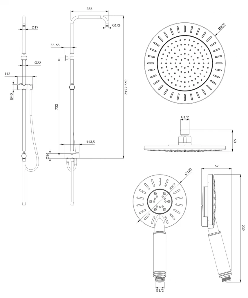 - sprchový stĺp (UN10041CR) s prepínačom a ramenom dažďovej sprchy