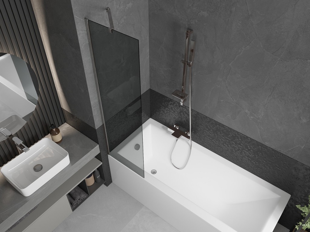Sklenené vaňové zásteny s univerzálnou montážou MEXEN NEXT FIX sú moderným a elegantným spôsobom, ako zabrániť špliechaniu vody pri sprchovaní vo vani. Jedná sa o pevnú vaňovú zástenu /nie je možné s ňou pohybovať/. V ponuke nájdete vaňové zásteny NEXT FIX s výškou 150 cm a rôzne šírky ako je: 50, 60, 70, 80, 90, 100 cm, farebné varianty tvrdeného skla s povrchovou úpravou, ako je: klasická transparetná, moderná čierna vzor, nepriehľadné mrazené a dymové. A máte možnosť výberu vyrovnávacích profilov nerovností stien vo farbe chrómovej, bielej, zlatej, ružovo zlatej av teraz obzvlášť žiadanom čiernom prevedení.