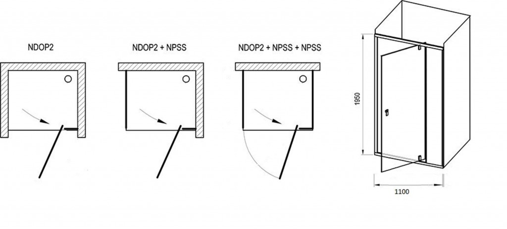Sprchové dvere pivotové NDOP2-110 čierna+Transparent