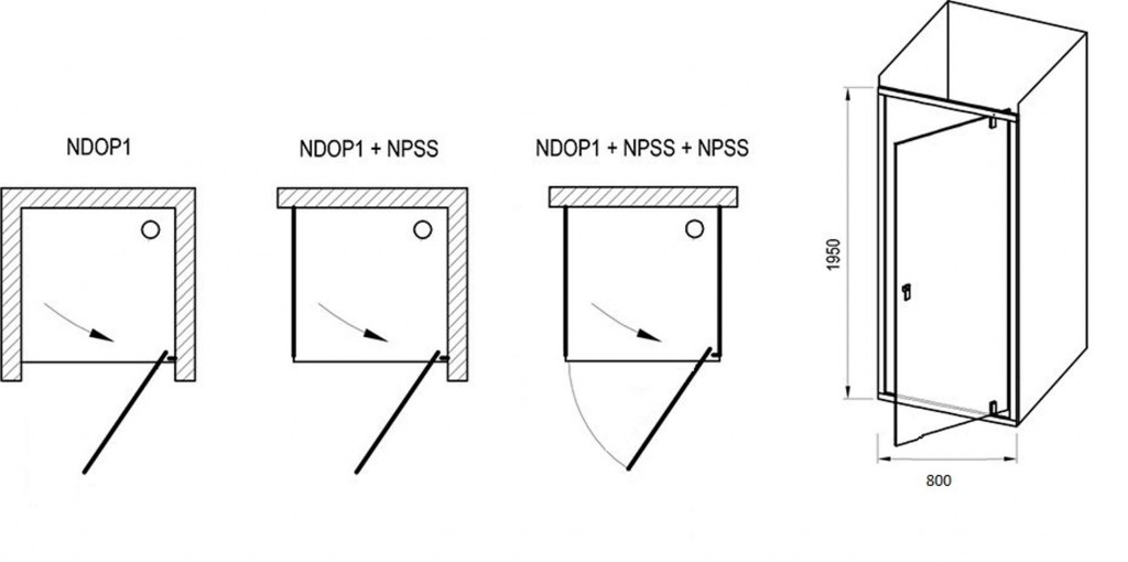 Sprchové dvere pivotové NDOP1-80 lesk+Transparent