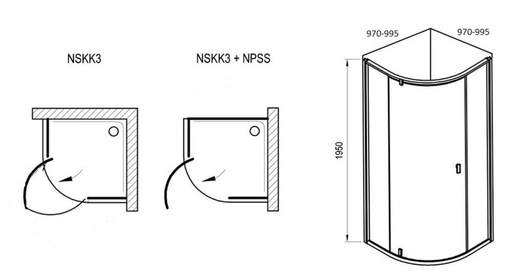Štvrťkruhový sprchovací kút NSKK3-100 satin+Transparent