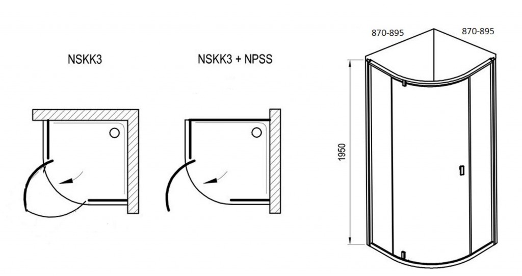 Štvrťkruhový sprchovací kút NSKK3-90 biela+Transparent