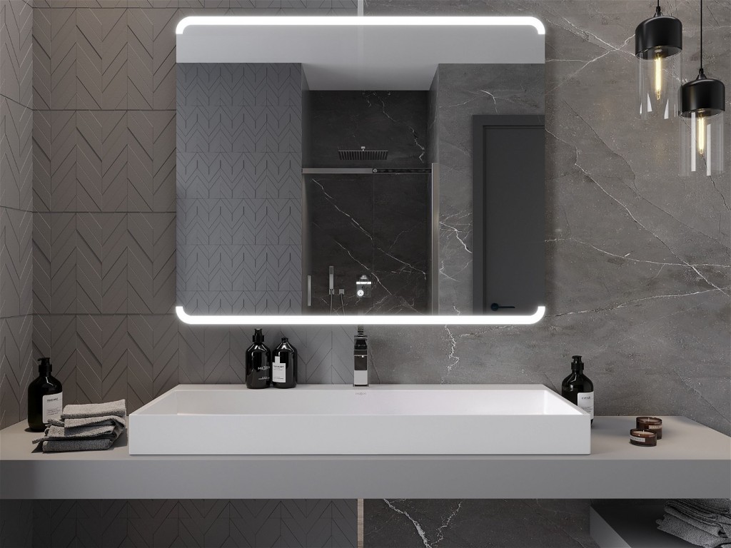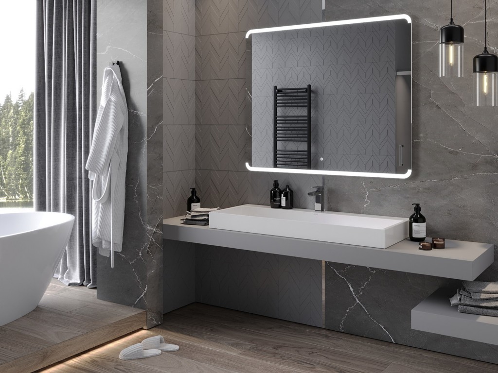 Moderné a jednoduché zrkadlo kolekcie NIDA je vybavené LED podsvietením, ktoré sa ľahko ovláda pomocou dotykového tlačidla priamo na ploche zrkadla . Zrkadlo je vybavené vyhrievacou podložkou ANTI-CAR , ktorá eliminuje zahmlenie skla.