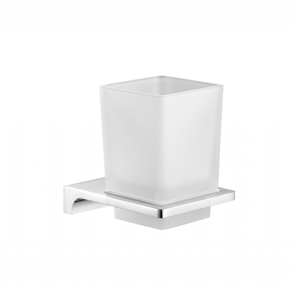 Hranatý chrómový držiak s pieskovaným pohárom sa skvele hodí ku všetkým umývadlám. Pohárik vám každý deň spríjemní osobnú hygienu.