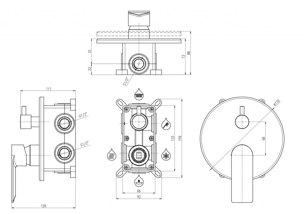 Túto batériu môžete použiť buď do sprchového kúta ako kombináciu troch prvkov alebo k vani ako kombináciu napr. napúšťanie prepadom, ručná sprcha a hlavová sprcha alebo výtokové ramienko, ručná sprcha a hlavová sprcha.