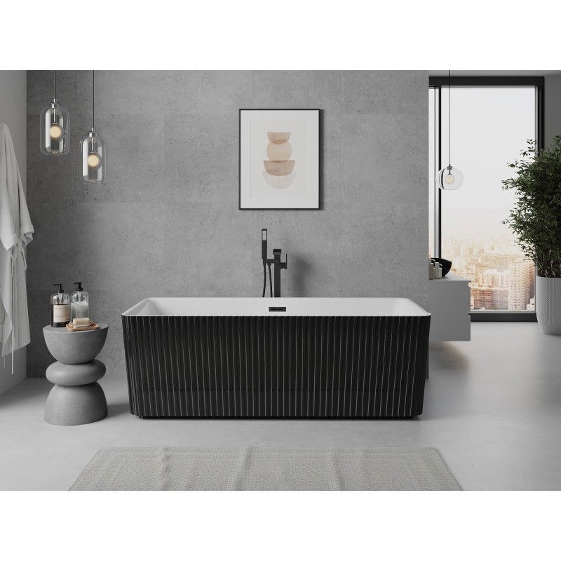 Špecifikácia produktu: Rozmery: 170 x 75 cm Výška: 58 cm Hĺbka: 45 cm Inštalácia: Voľne stojaci Materiál: Sanitárny akrylát Farba: Biela/Čierna Povrchová úprava: Čierna Štruktúra: Drážkovaná Otvor pre prepad: Áno Otvor pre batériu: Nie Sifón a zátka clic batériu a UV žiarenie