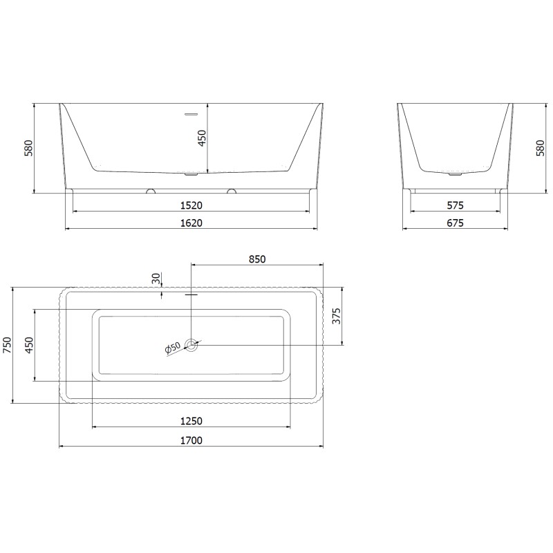 Špecifikácia produktu: Rozmery: 170 x 75 cm Výška: 58 cm Hĺbka: 45 cm Inštalácia: Voľne stojaci Materiál: Sanitárny akrylát Farba: Biela/Čierna Povrchová úprava: Kartáčovaná pištoľovo šedá Štruktúra: Drážkovaná Otvor pre prepad: Áno Otvor pre batériu: Nie batériu, batériu a UV žiarenie