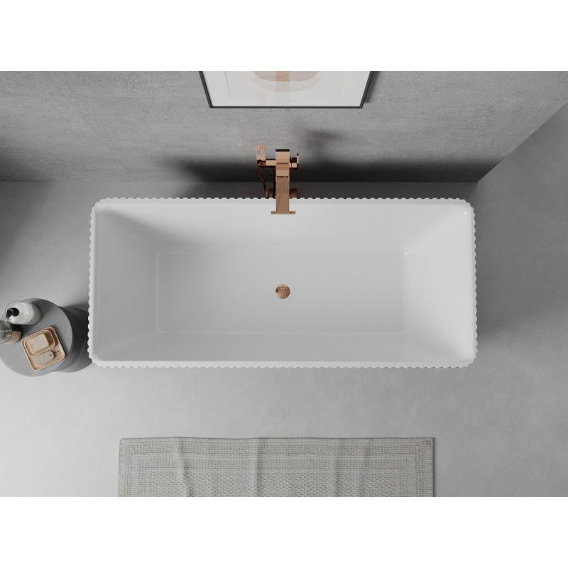 Špecifikácia produktu: Rozmery: 170 x 75 cm Výška: 58 cm Hĺbka: 45 cm Inštalácia: Voľne stojaci Materiál: Sanitárny akrylát Farba: Biela/Čierna Povrchová úprava: Ružové zlato Konštrukcia: Drážkovaná Otvor pre prepad: Áno Otvor pre batériu: Nie Sifón a záclon UV žiarenie