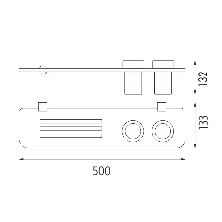 NIMCO Borm ixi Police a poháre na kefky chróm BR X350-58DW-26 Police s frézovanými otvormi s matovanými pohármi. Šírka matované police PLEXIGLAS 50 cm.