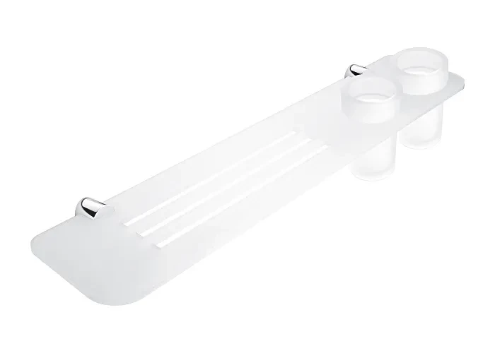 NIMCO Borm ixi Police a poháre na kefky chróm BR X360-58DW-26 Police s frézovanými otvormi s matovanými pohármi. Šírka matované police Plexiglass 60 cm.