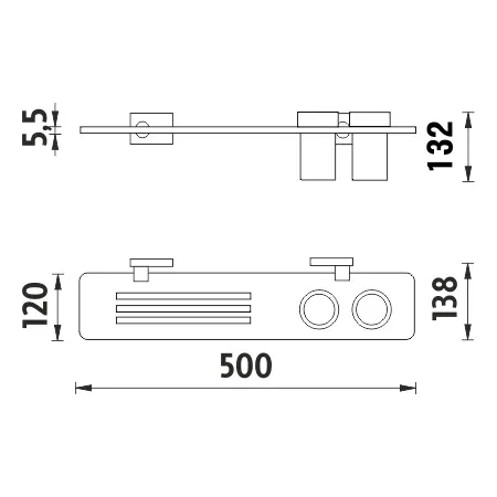 NIMCO Keira Police IXI sa pohármi chróm KE X350-58DW-26 Police Plexiglass s frézovanými otvormi s mat. pohármi. Úchyty mosadz / chróm. Dĺžka 50 cm.