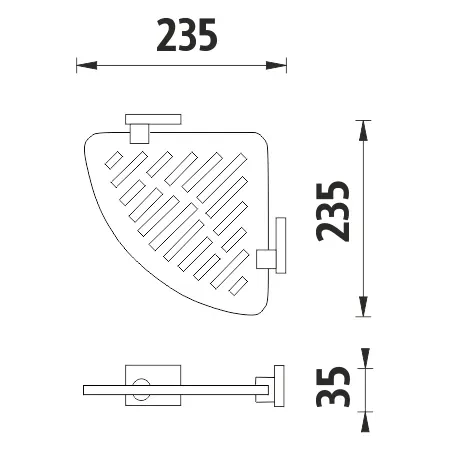 NIMCO Keira Police rohová IXI chróm KE X212-26 Rohová polička Plexiglass s frézovaním. Úchyty mosadz / chróm. Rozmer 23,5x23,5 cm.