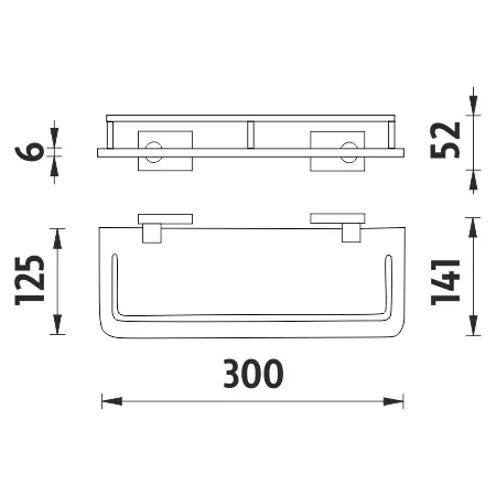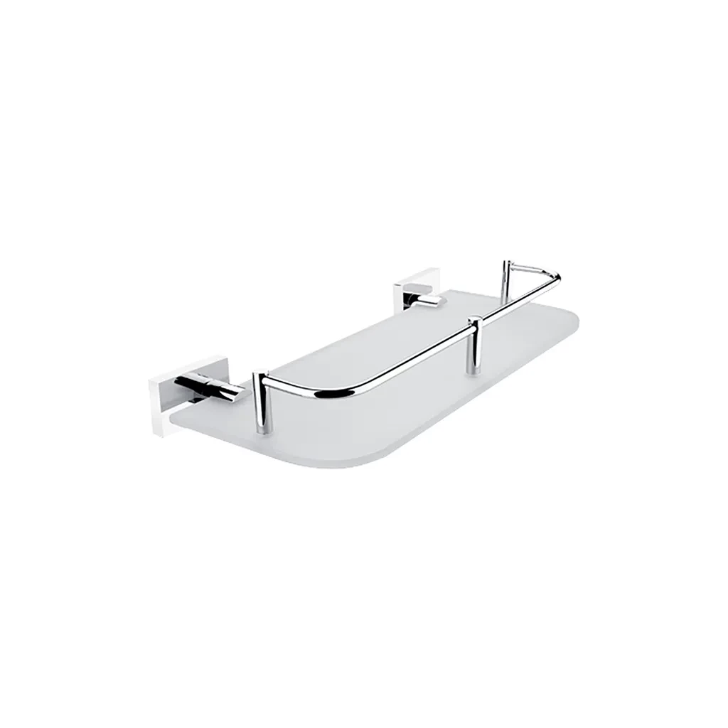NIMCO Keira Polica s ohrádkou chróm KE 22091AX-30-26 Polica s ohrádkou z matovaného skla. Dĺžka 30 cm. Úchyty mosadz / chróm.