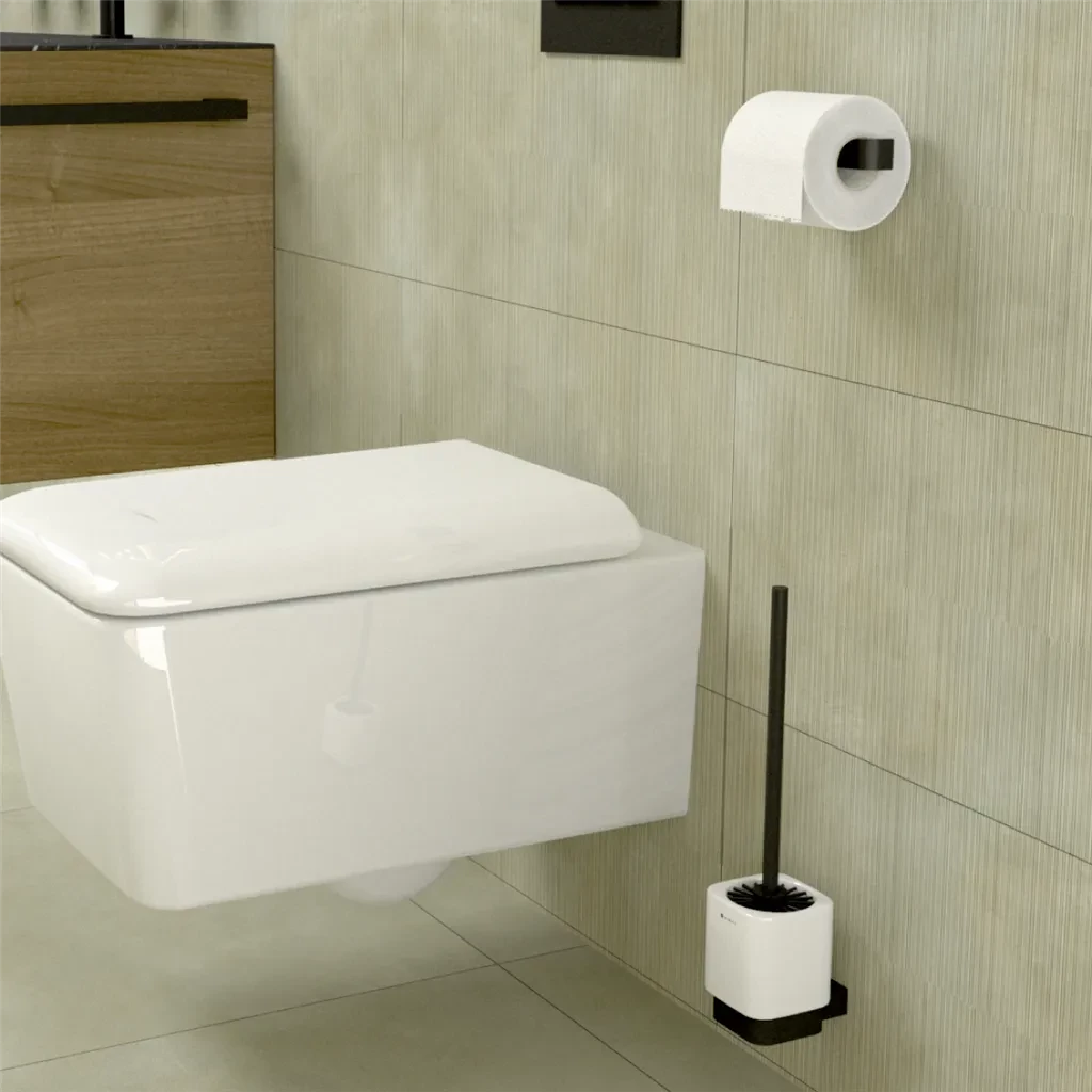 Základná sada doplnkov k WC. WC kefa s keramickým držiakom na stenu a držiak toaletného papiera