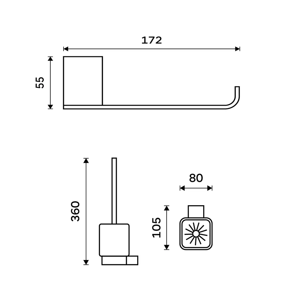 Dizajnový držiak wc papiera na stenu, bez krytu. 1 ks.