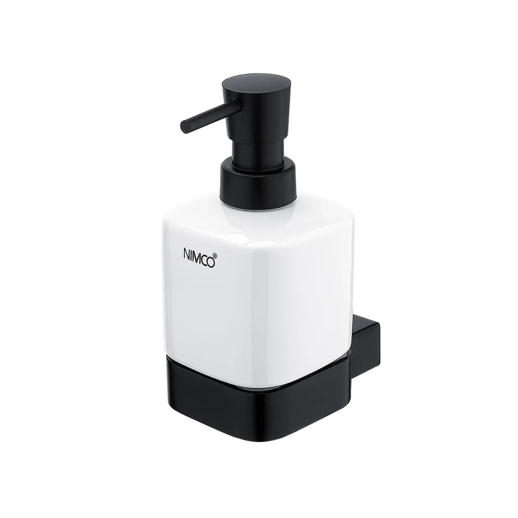 NIMCO Kibo čierne Dávkovač tekutého mydla čierny mat Ki 14031K-T-90 Dávkovač na tekuté mydlo. Nádobka keramická. Úchyt mosadz / čierny mat. Objem dávkovača 250 ml.
