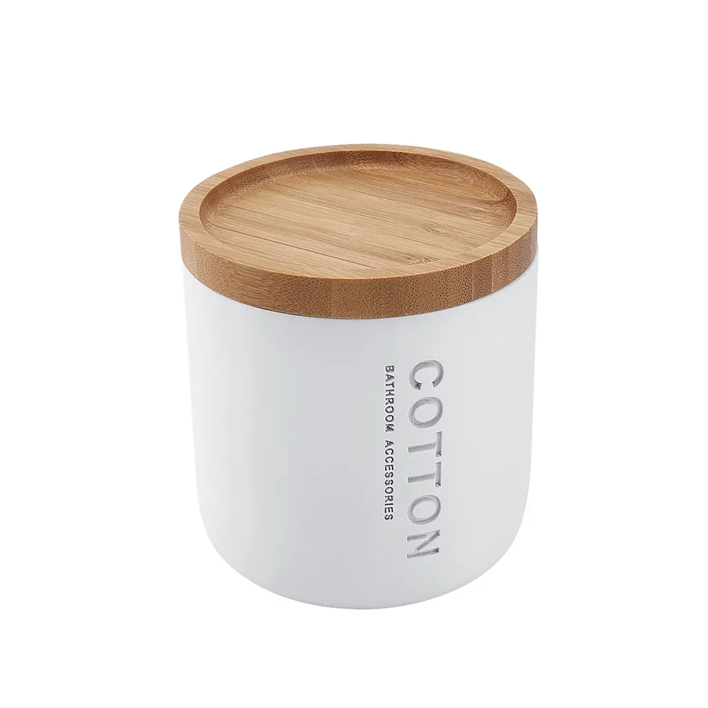 NIMCO Kora Dóza na kozmetické tampóny a iné potreby KO 24051-05 Dóza na kozmetické tampóny alebo iné potreby. Farba biela. Materiál polyresin, bambusové drevo.
