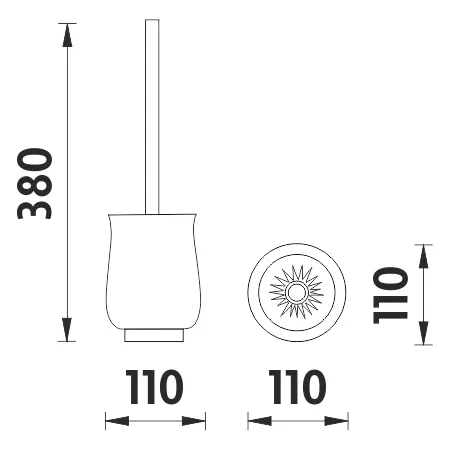 NIMCO Lada stojanková Toaletná WC kefa 1094LA-80 Keramický voľne stojaca WC kefa. Rukoväť kefy kovová. Povrchová úprava rukoväte staroměď.