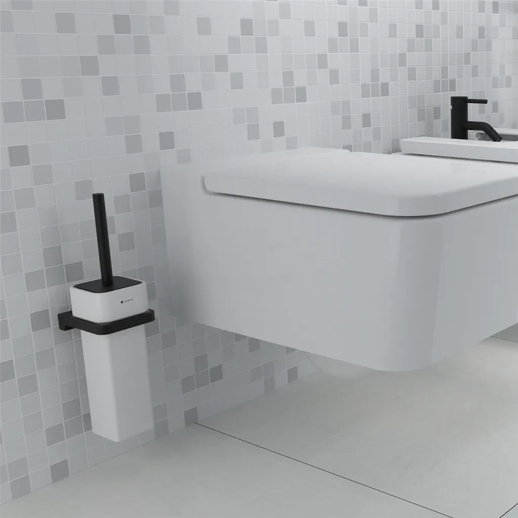 Nimco Maya čierna mat toaletná wc kefa MAC 29094K-90 WC kefa nástenná, hranatá keramická nádoba, čierna kefa, držiak čierna. Nádoba na WC štetku z bielej keramiky je krytá chrómovaným vekom. Farba / úprava: Čierna Povrchová úprava: Čierna matná Materiál: ZN, mosadz, keramika Montáž a umiestnenie: Nástenné - vŕtanie